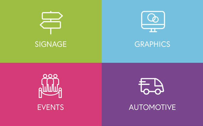 We have also streamlined our business to offer 4 main service solutions. These are Signage, Graphics, Events and Automotive. We have plenty of industry experience and knowledge in each of these areas, that has always made us have the edge over our competitors, excelling at customer service and delivery.