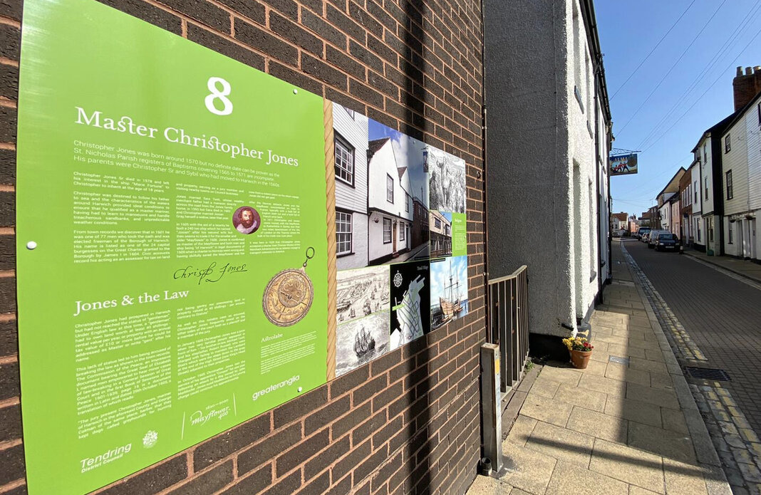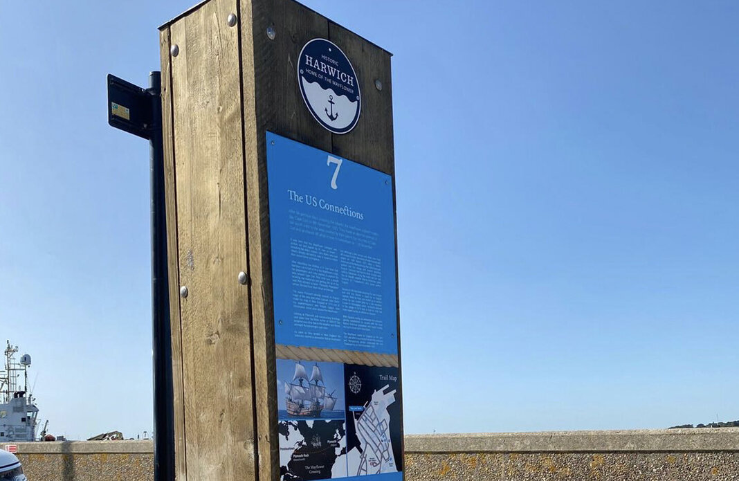 To celebrate the 400 year anniversary of the Mayflower crossing to the New World we were commissioned by Tendring District Council to design and develop a wayfinding trail to not just document the connection with the famous ship and its crew, but also the rich Maritime Heritage that associated with Harwich Town.