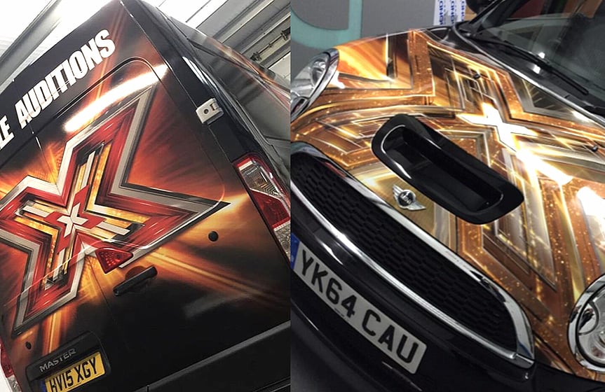 Some projects include the branded X Factor production HGV lorries, contestant tour coaches, studio door and wall graphics and complete car wraps.